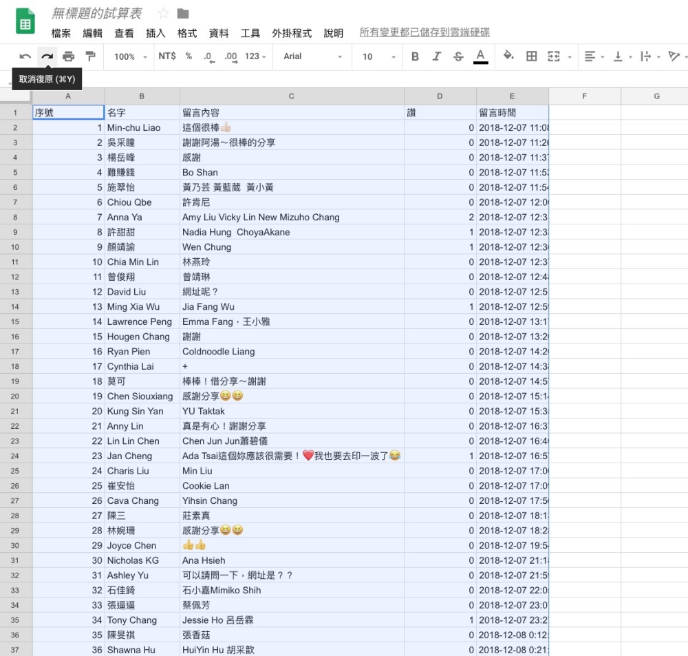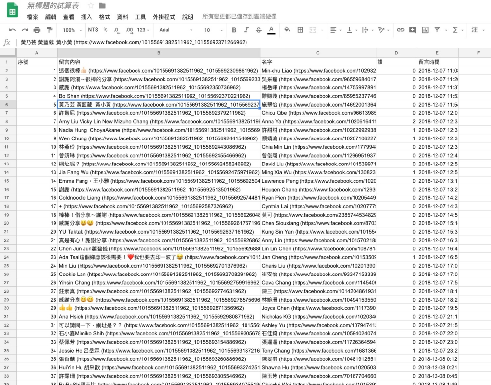 這麼一來表格內容就完整的貼到 Google 試算表囉,之後你也可以直接下載為 Excel 檔案。