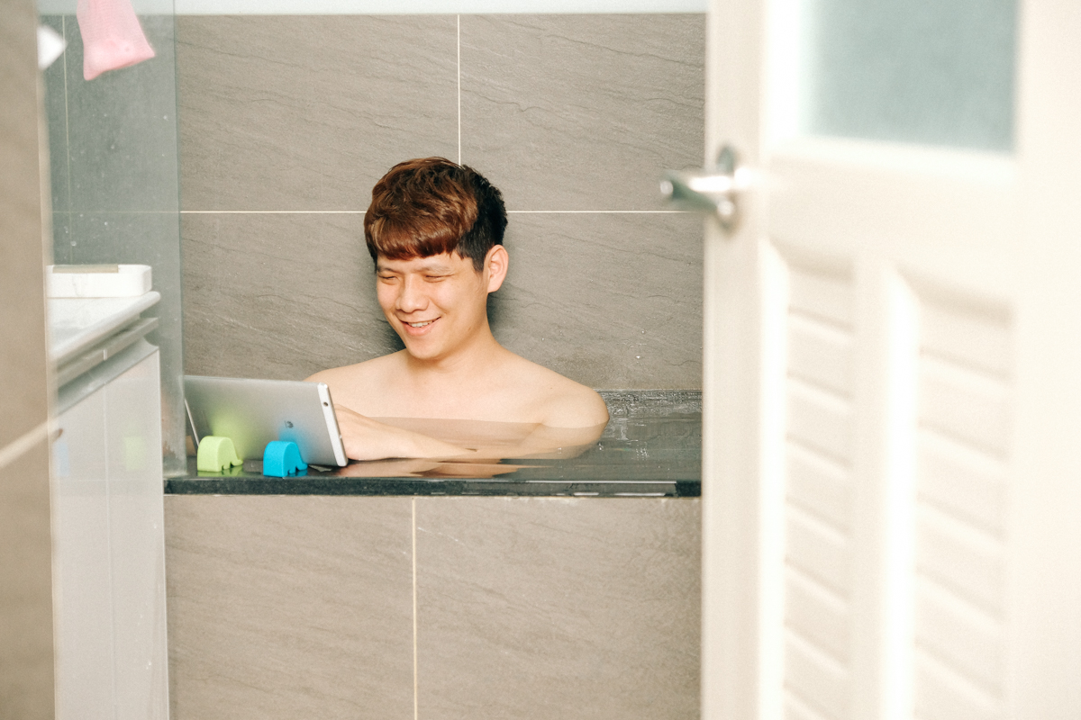 裝好熱水器的當天晚上,剛好是較冷的天氣,當然要先來泡個澡啊,有恆溫的好處就是放水可以維持需求的溫度,如果是傳統的熱水器,有時水放到一半會變成冷水,超囧。