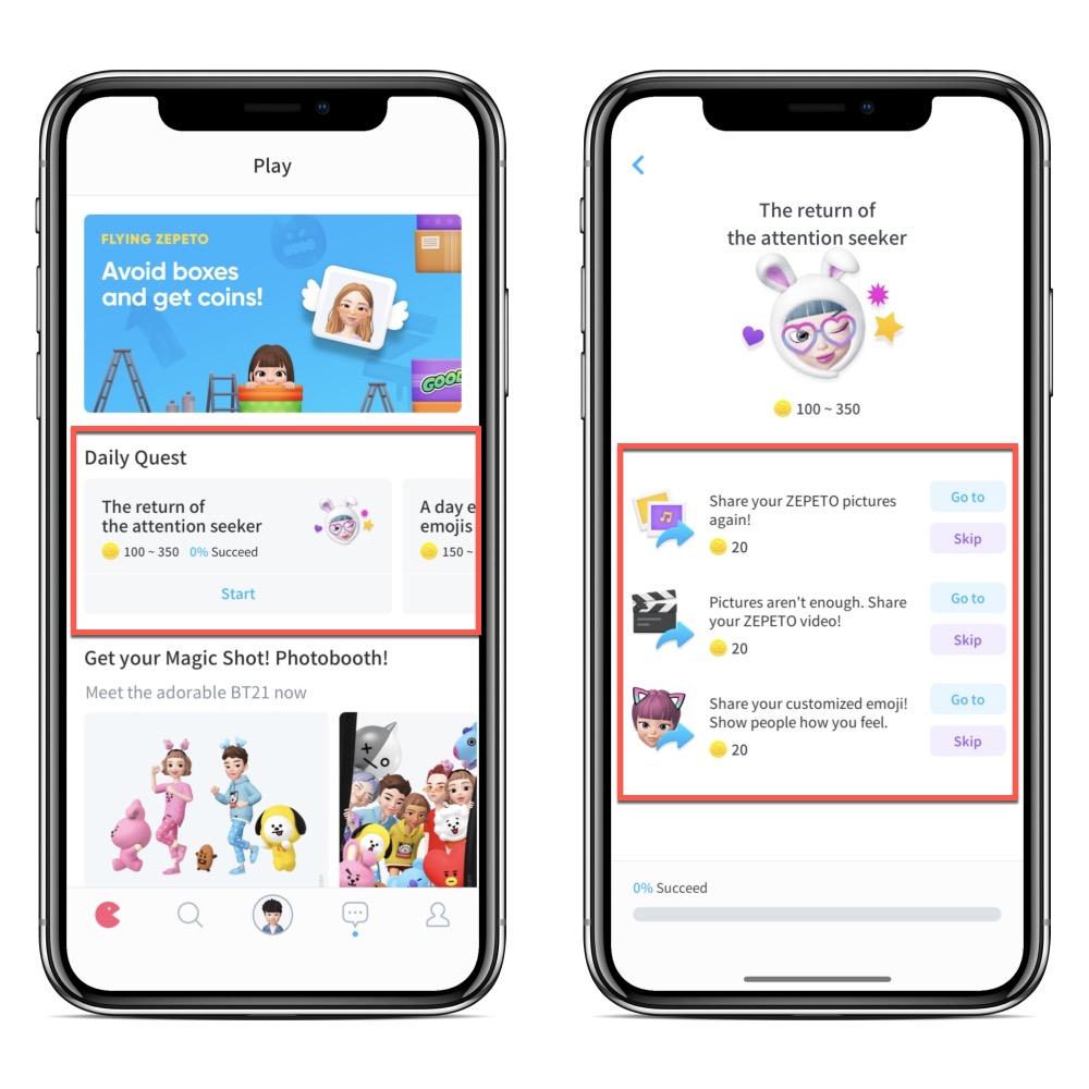 ZEPETO 阿湯自己是覺得介面已經做的算蠻簡單,不過大概是因為英文介面的關係,很多人第一次註冊後還不是很理解要怎麼使用,通常用註冊送的 1000 金幣加幾次拉霸後就買套基礎的衣服穿搭就開始玩合照,但很多人不知道怎麼繼續增加金幣,最快的方式當然是花錢,因為虛擬幣也沒有真的很貴,但如果你想靠自己賺錢的話,阿湯也提供新手幾個在 ZEPETO 可以獲得金幣的方式,其實都不難,只是需要一點耐心(想免費當然就是花心力囉)。
