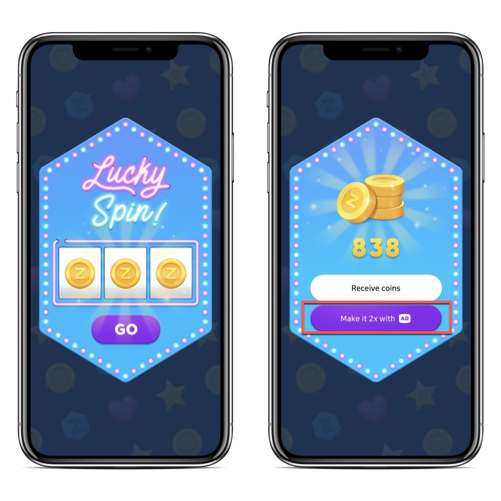 當有獲得拉霸機會時,拉完別直接接收,記得可以點擊看廣告變 2 倍金幣,像是抽到 838 金幣,看完廣告就變近 1700,其實差很多的啊。