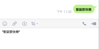那麼要如何在對話視窗中讓字體變成「粗體」、「斜體」、「粗體 + 斜體」呢? 變粗體方式:在想要顯示的文字前後加上 "*",例如「*聖誕節快樂*」。