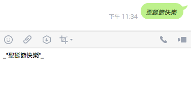 變斜體方式:在想要顯示的文字前後加上 "_",例如「_聖誕節快樂_」。