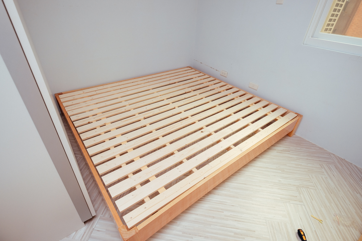 裝完像這樣,中間是用交錯的方式,還蠻穩固的,去掉床頭床尾,清爽很多。