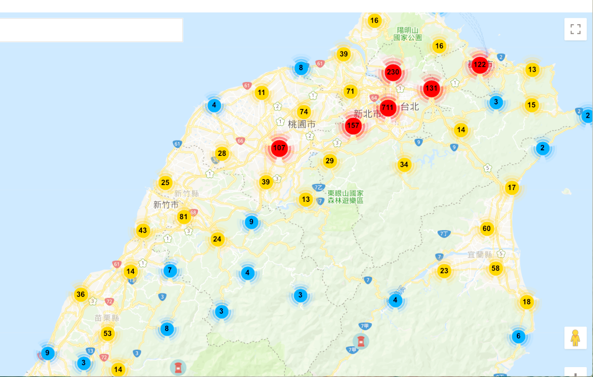當你點擊一個大區域後會顯示該區域的更細部的分佈圖,一路的往內點就可以找到你要的。