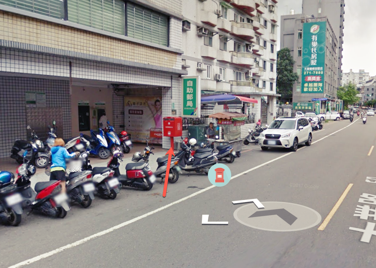 另一個方式比較直接一點,直接輸入你的位置搜尋,可以是地址、可以是路段,馬上就可以找到附件哪裡有郵筒。