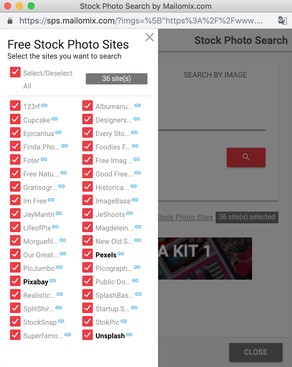 預設的三個主要就是常用的 Pixabay、Pexels、Unsplash,全部共有 36 個,不過如果全選是適合多個關鍵字搜尋使用,建議可以選 5~10 個常用較熱門的就可以了。
