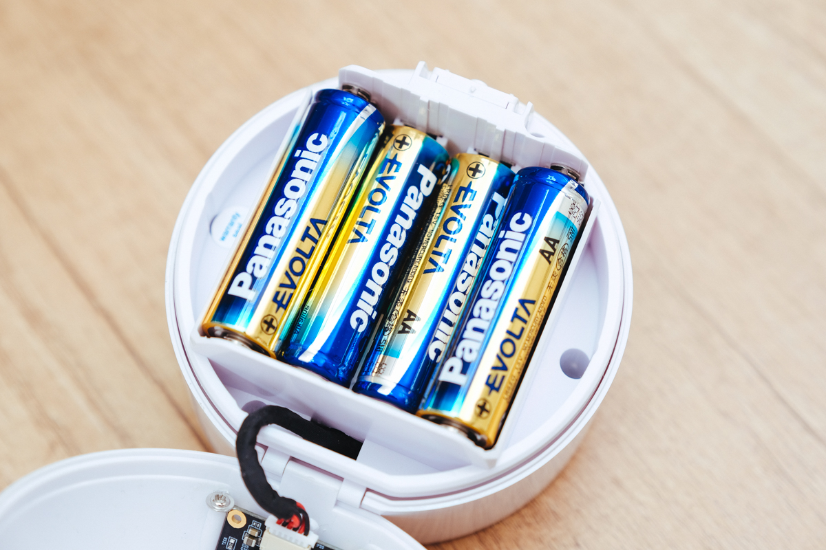 如果你有需要錄影存檔,可以在這裡加裝一張記憶卡,阿湯建議大於 64GB 一般來說就很夠用,如果想裝設電池使用的話,採用 6 顆 3 號電池,也可以用充電電池交替使用,就不用一直去買一般電池。