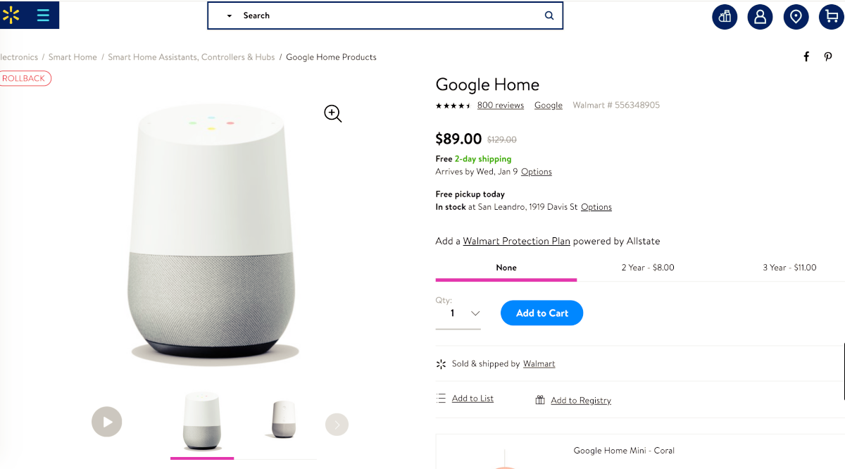 阿湯分別填入蘋果官網以及 walmart 這二個網站的網址,購買 HomePod 及 Google Home。