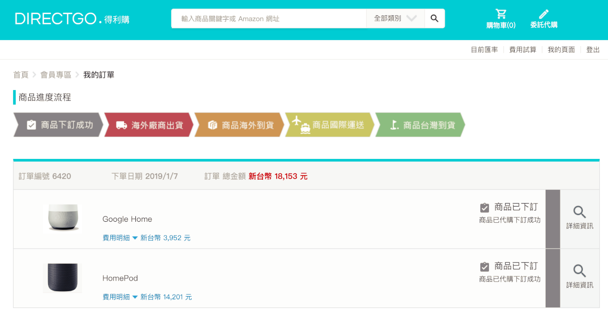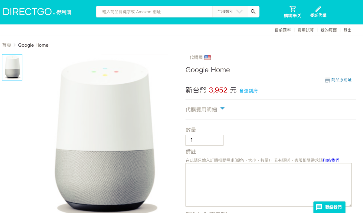 阿湯收到 HomePod 的報價為 14201 元,Google Home 則是 3952 元,價格跟一般個人代購的並沒有太大差異,但是多了很多保障,透過網站下單有憑有據,也有在台灣註冊公司,如果收到的商品有問題,他們也會做為中間的橋樑幫你與美國賣方溝通,如果你英文不 OK 的話,就完全交給專業的來就對了,各方面來說都比起一般個人代購安心不少(畢竟網路詐騙真的很多啊),所以價格即便比一般代購貴一些些,阿湯仍然會因為比較安心而透過得利購下單(嗯,所以我下單了..)。