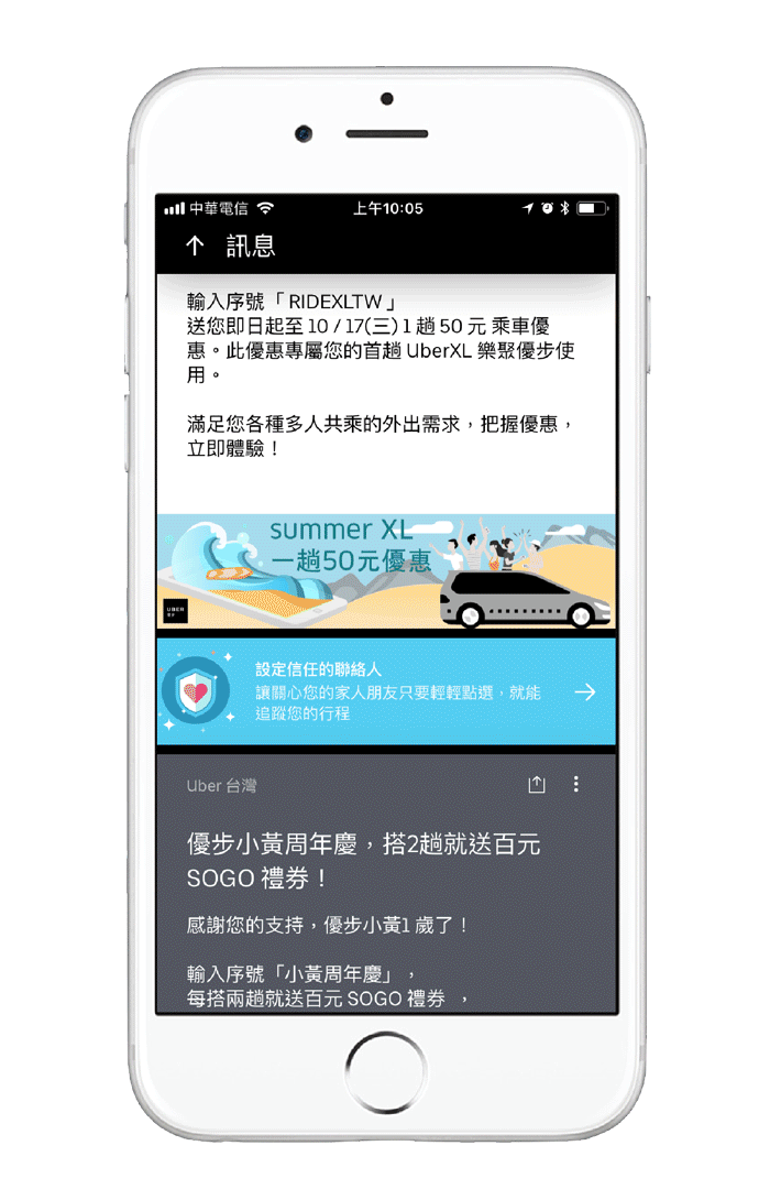 Uber 還依照了乘客不同的需求提供不同的優步選擇,甚至還有許多家長相當喜歡的「寶寶優步」選項,現在更是再為大家的安全帶來進一步防護,就是讓大家不管什麼時候出門,都可以放心安全行!