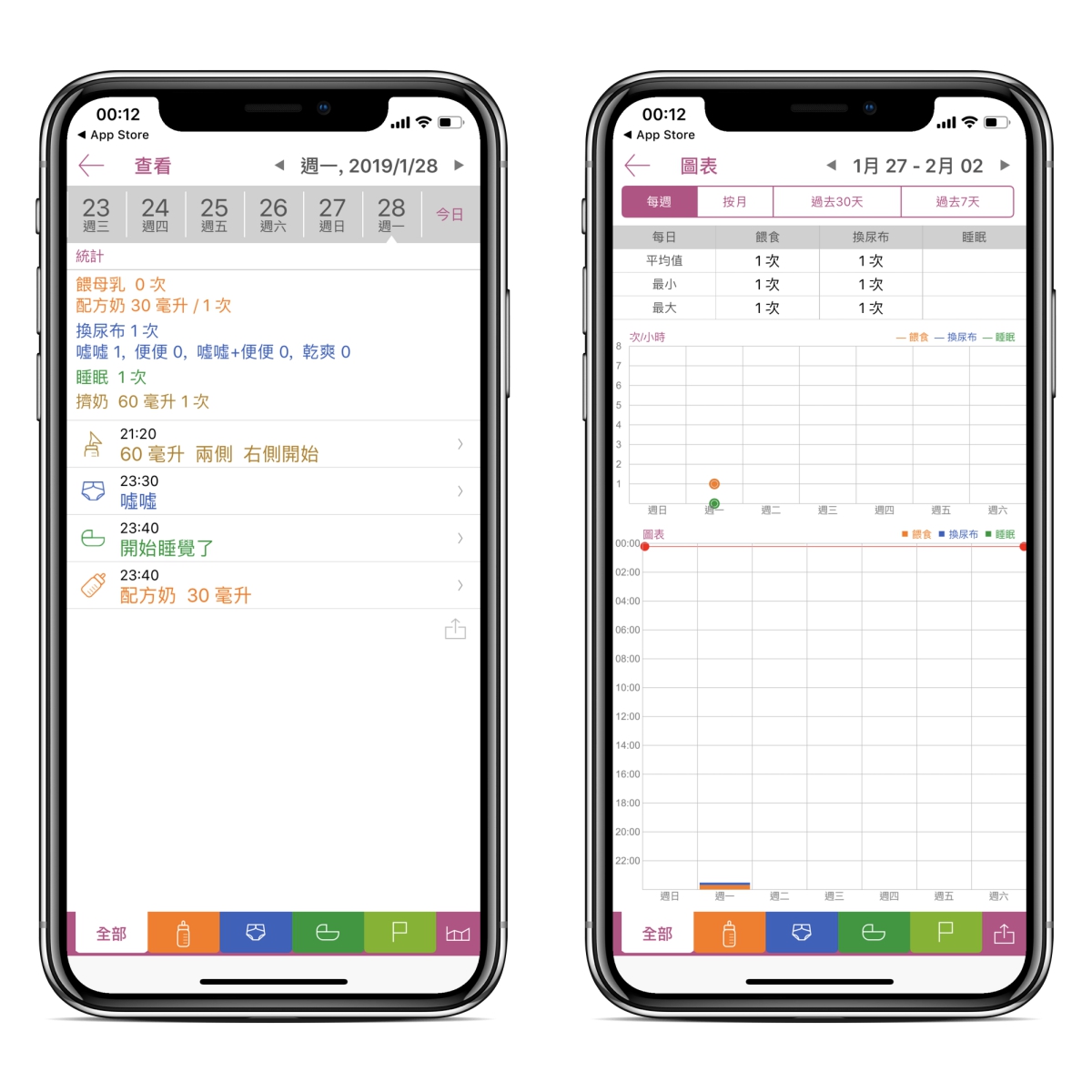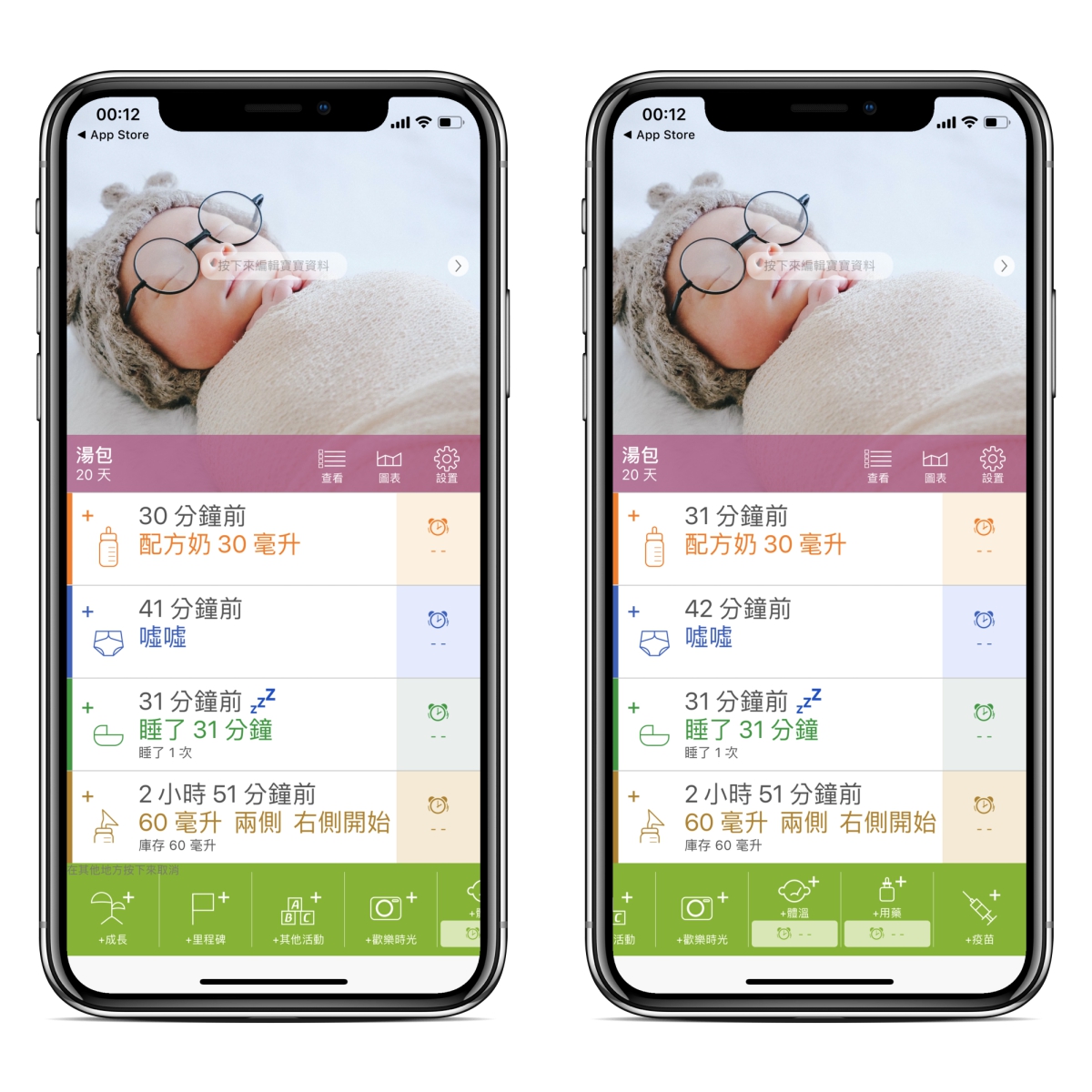 阿湯目前和顆老大還住在月子中心裡,我們和湯包親子同室的時間其實蠻長的(很常過夜),護理師有提供我們一張表單可以填寫寶寶的餵奶、換尿布的記錄,我們覺得這樣可以看看寶寶的習慣還不錯,所以想著回家後應該也可以繼續記錄,但以阿湯這種喜歡 e 化的人來說,當然就是開始尋找 APP 了,安裝了幾款後,最後選定了一款「寶寶生活記錄」,除了餵奶跟換尿布之外,還可以更詳細的記錄哺乳時間、睡眠記錄以及成長記錄等,也能設置餵奶或哺乳的提醒,基本上要用在寶寶及媽媽身上的記錄跟提醒都具備了。