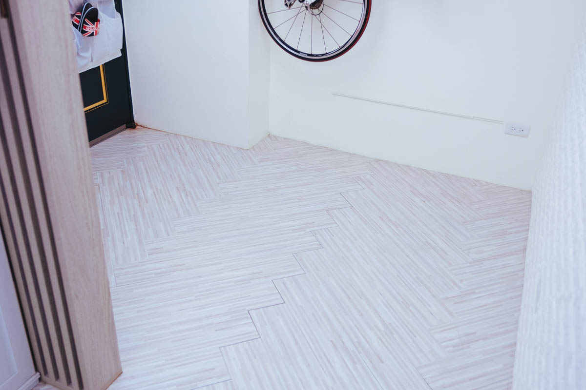 仔細看阿湯鋪設的方式就是規則中又帶點不規則感,我本人就是個不喜歡被規則侷限的人,當然地板也要小小的不規則一下啦。