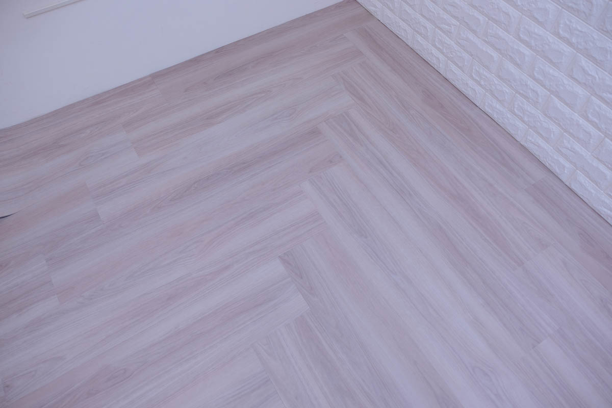 第二種是正常的交丁拼法,不過阿湯並不是用 1/2 來拼,而是隨意的間隔不同長度,阿湯覺得稍微不規則一點可以讓地板的紋路看起來更好看。