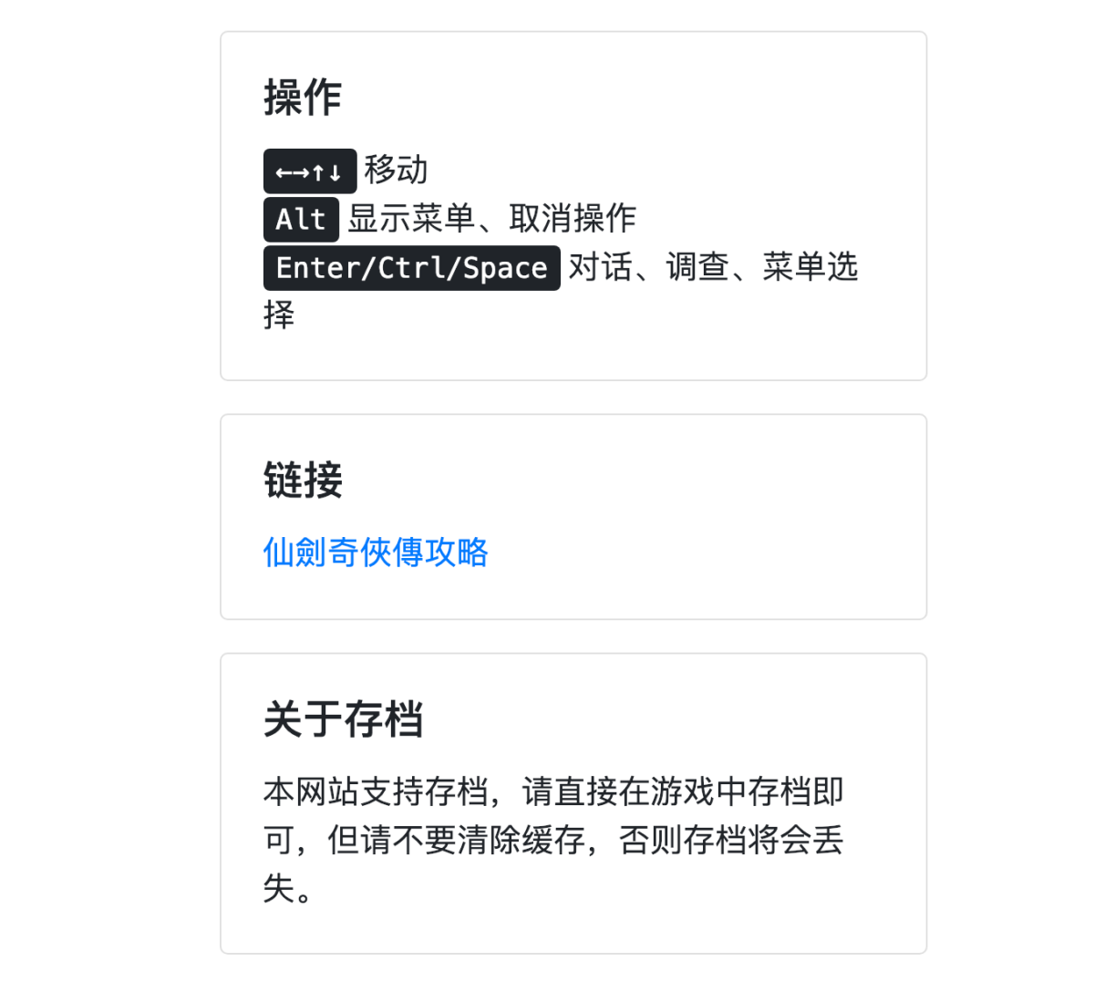 以仙劍奇俠傳來說,之前有 Windows 98 版釋出,但是存檔很多人都會出問題,而這個是透過網頁存檔就沒有這問題,檔案主要會存在網頁的暫存檔裡,所以只要你沒清空網頁的暫存檔的話,原則上是沒有問題的,或者網頁就一直保留著也是可以的。