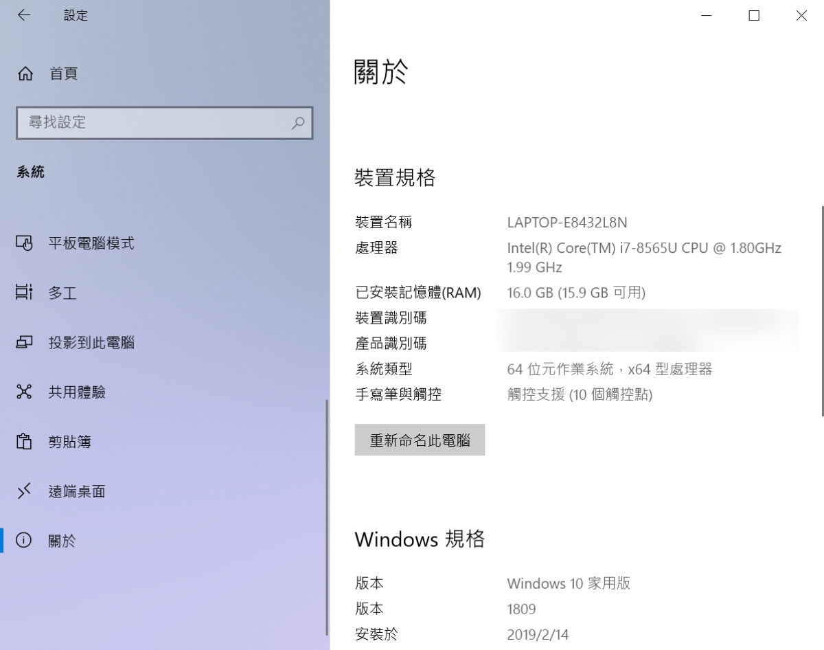 - 作業系統:Windows 10 Home