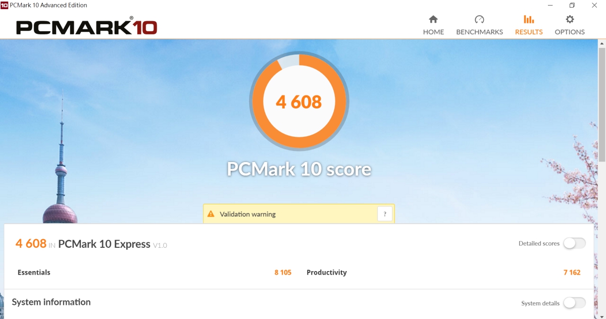 透過 PCMark 10 Express 模式,獲得 4608 分,效能整體來說算是介於中高階的筆電水準。