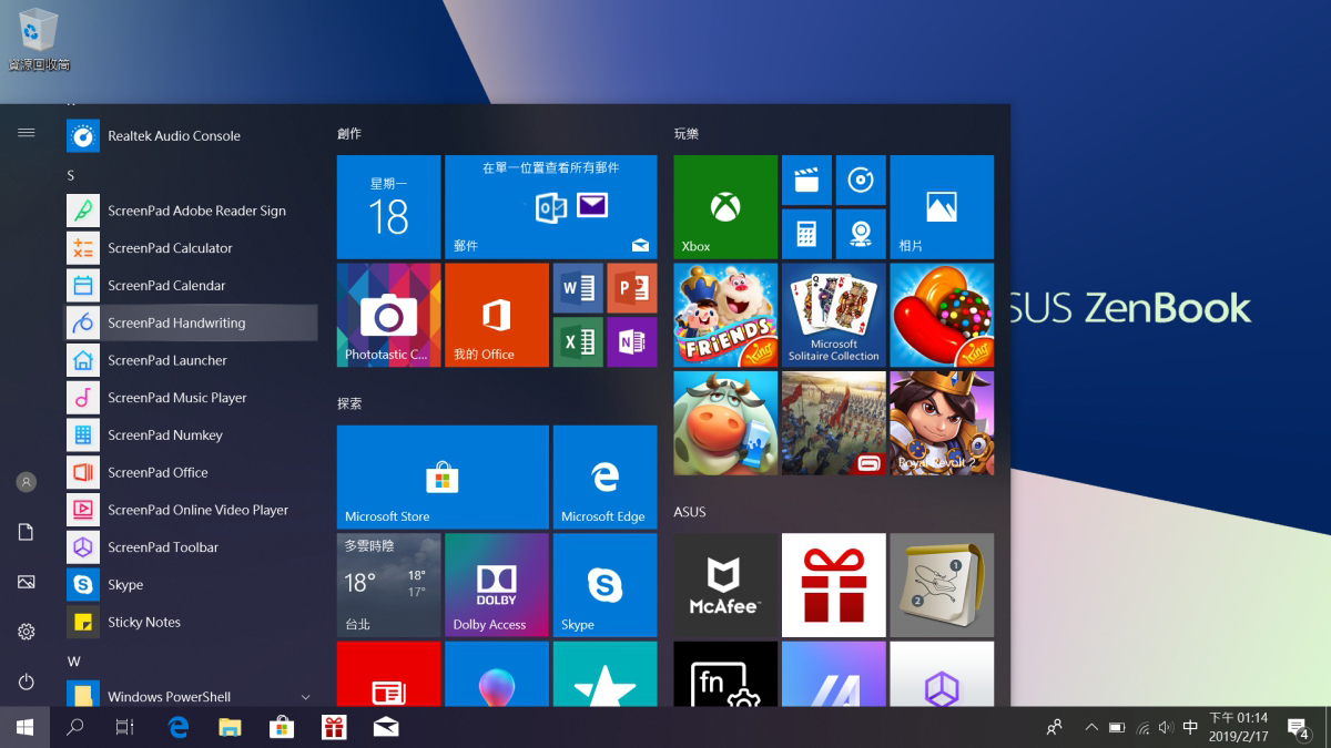 搭載 Windows 10 Home 作業系統,用來配合內建的 ScreenPad 非常好用。