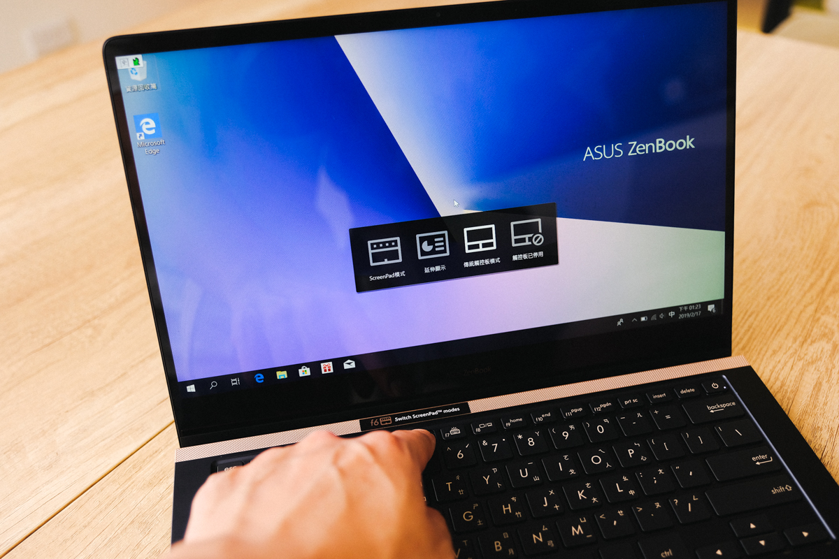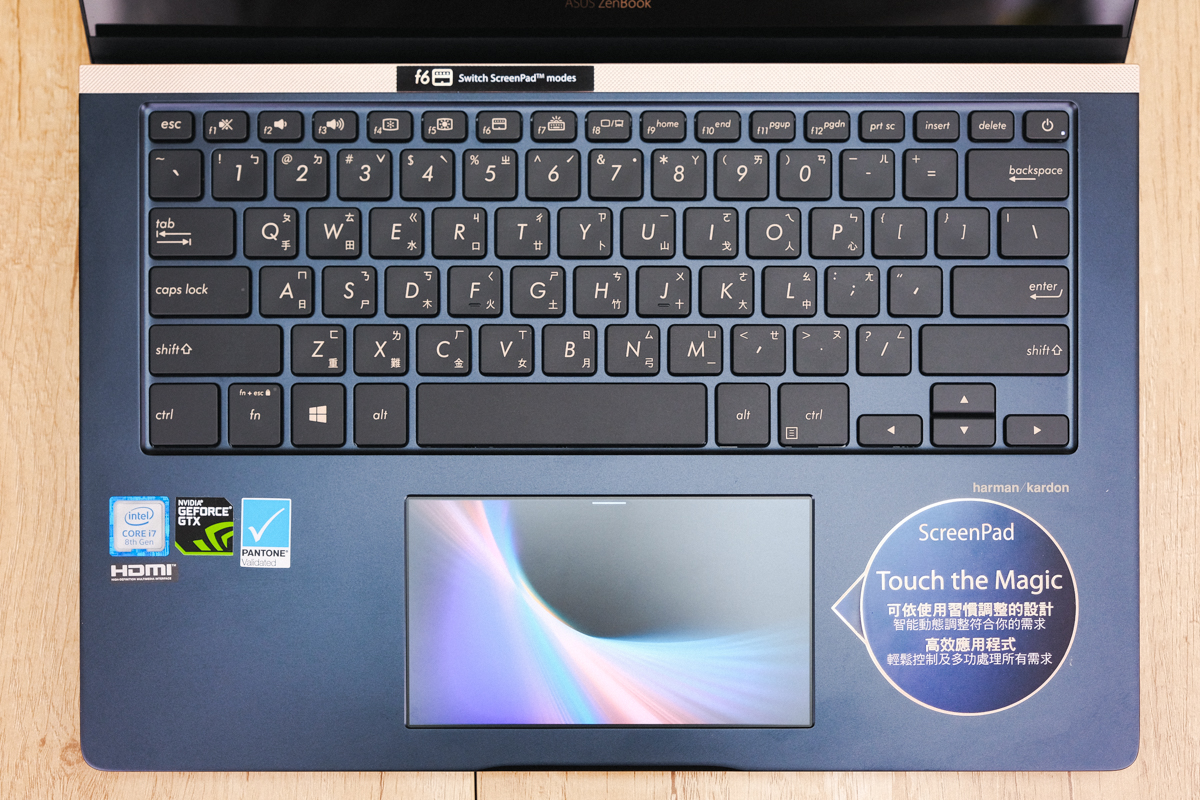特別在 F6 按鍵的上方貼了 一張 ScreenPad 的提示,可以讓我們用 F6 來切換使用模式,後面阿湯也會和大家詳細的分享。