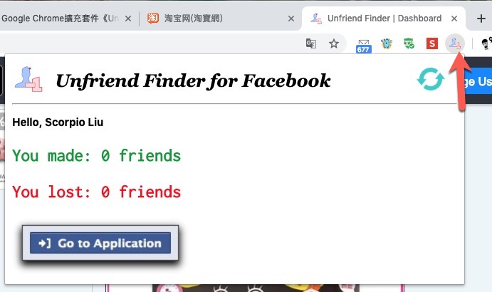 平常在瀏覽器右上角的工具列中就會有一個圖示,點擊後可以查看目前你加入了多少好友或是被多少人移除好友。