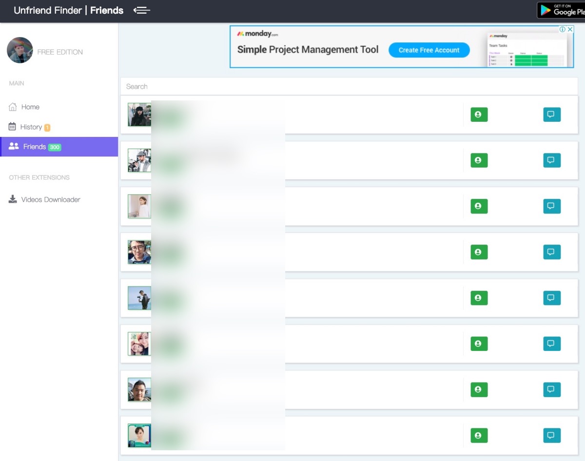 Unfriend Finder 裡還有查看好友列表的功能,不過無法在這裡操作好友狀態算是稍稍可惜啦。