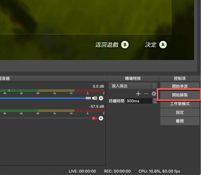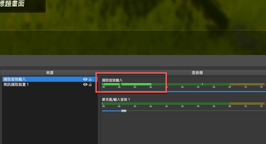 然後這時你可以稍微操作一下遊戲畫面,看看你的擷取音效輸入這裡的音量條有沒有動靜,有的話那就表示有擷取到聲音。