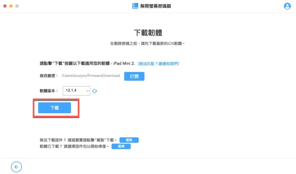 這個步驟會幫你下載設備所需要的韌體,點擊「下載」。