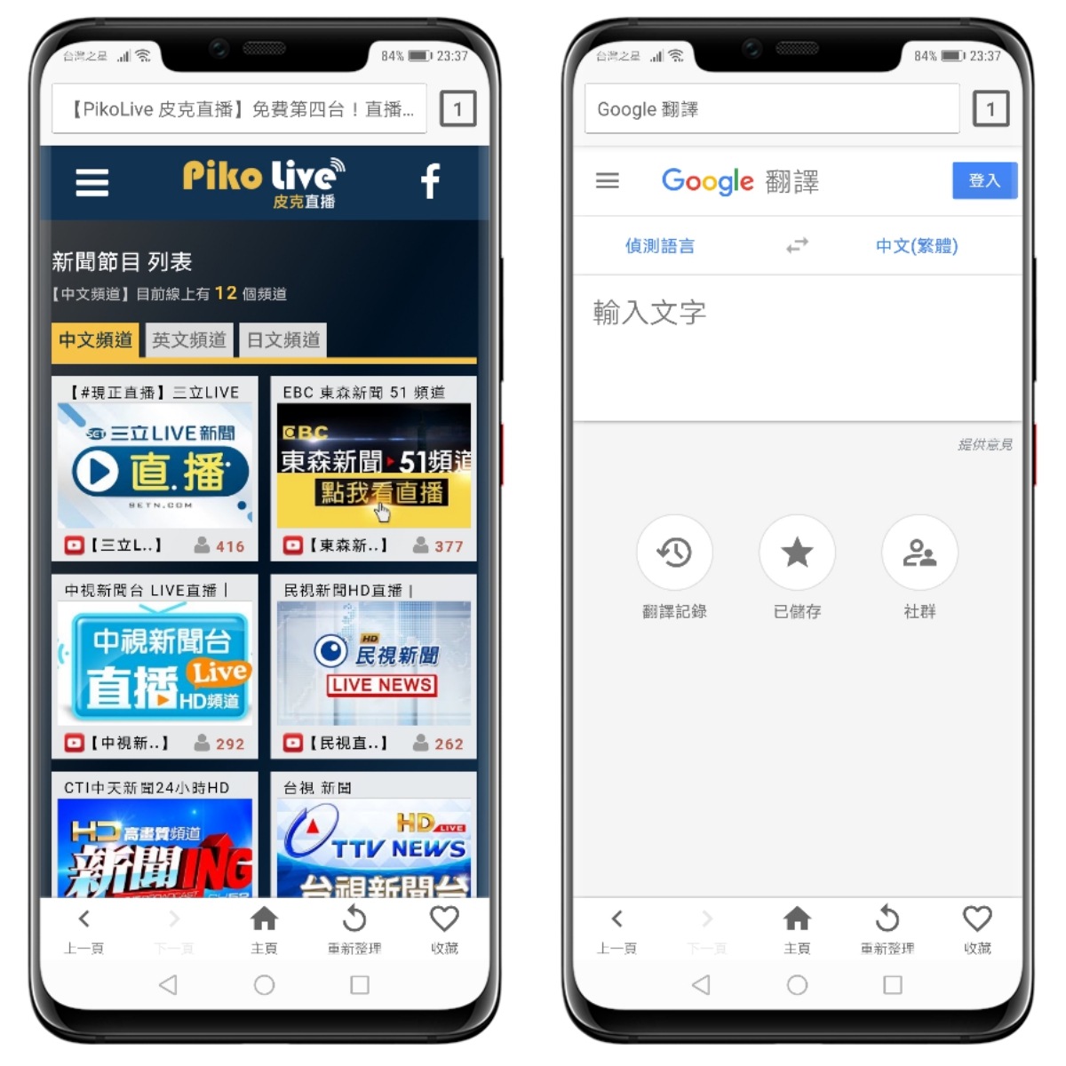 Android 版的部份,阿湯直接給大家看截圖就好,因為 Android 版本沒有像 iOS 版有獨立做一些功能進去,全部的內容都是直接嵌入網頁連結,如果你要用在收藏網頁,做法也是跟 iOS 一樣的,先找到要收藏的網頁後,然後加入星號就可以了。