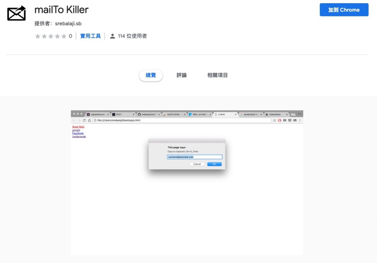 Chrome 外掛「mailTo Killer」使用介紹: