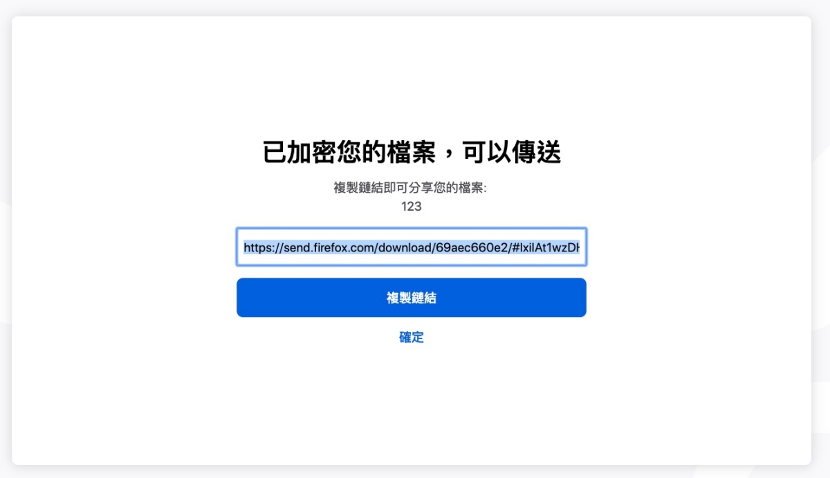 當別人收到連結時會是像這樣,可以直接點擊下載,速度還頗快的,不愧是 Firefox 旗下的服務啊。