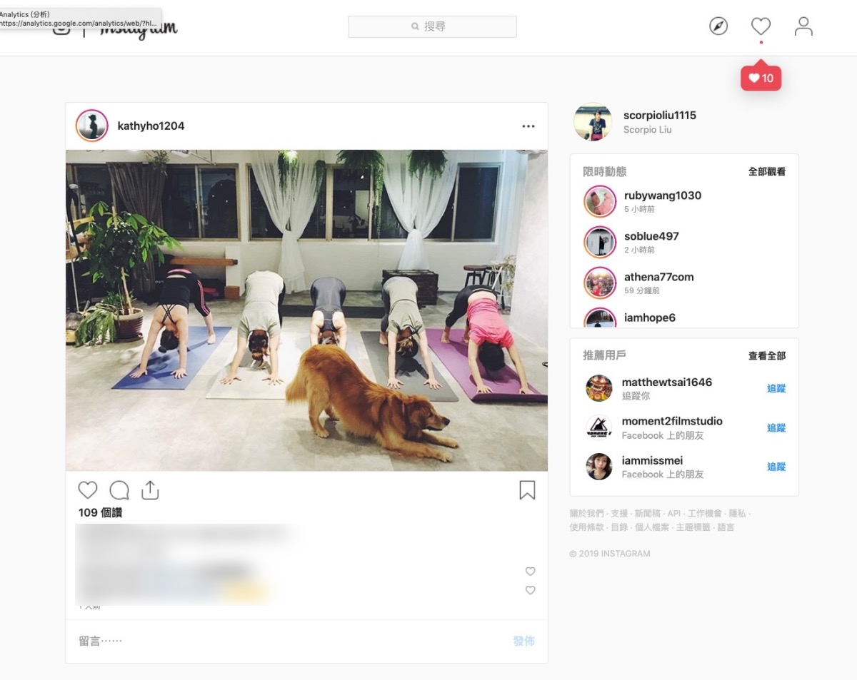 一般來說,用電腦開啟 Instagram 會長像這樣,登入當然沒問題,留言、按愛心也可以,唯獨不能做的就是發佈貼文,往下來看。