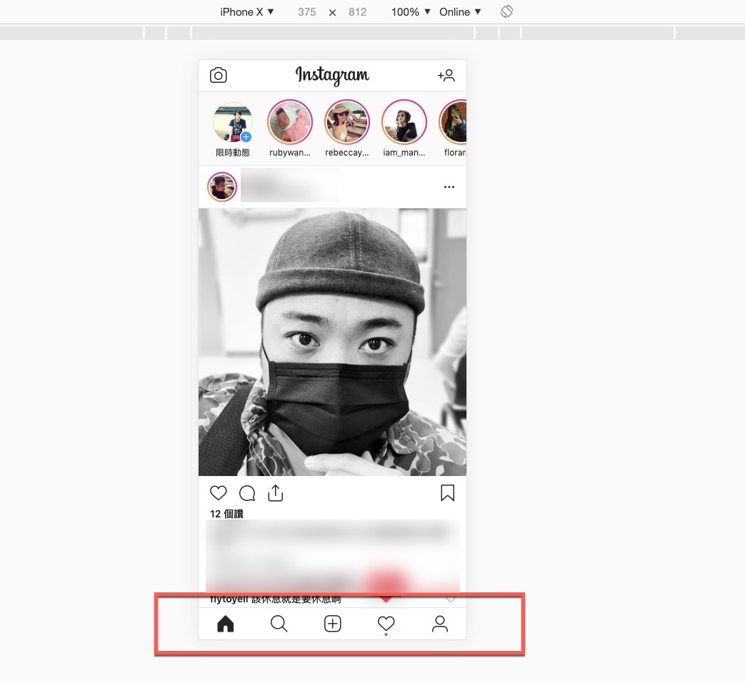 然後就會跳出跟手機版一樣的 IG 畫面囉,下排的工具列就會出現了。