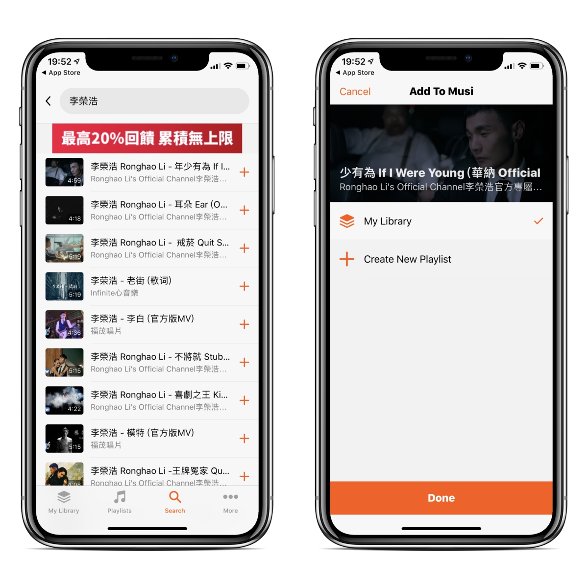 如果只是想單聽一首,也可以直接點擊播放,還可以直接看 MV,播放清單也能直接隨機播放,也能分享給朋友。