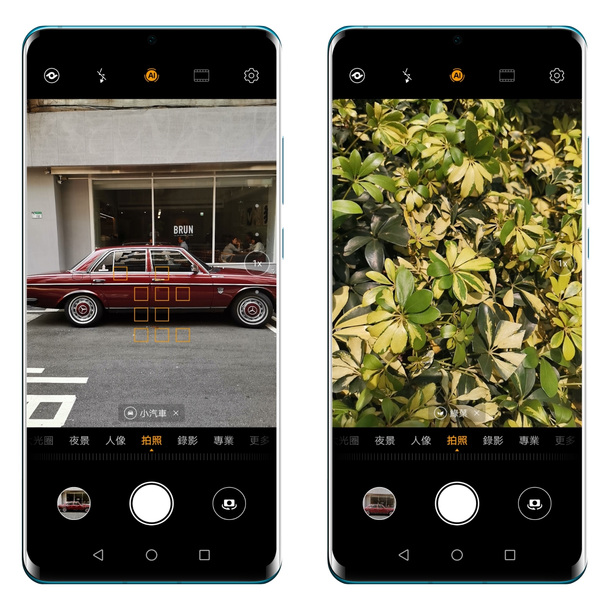 第一個要分享的就是 AI 場景辨識,這時大家一定忍不住想問,這功能都出那麼久了,應該不用介紹了吧,不過值得大家注意的是,雖然華為近幾次的發表已經沒特別提 AI 場景辨識,但其實是因為能夠支援的場景已經多到不知道怎麼形容了,阿湯在實際使用 HUAWEI P30 Pro 時也有發現,在這次搭載的 AI 場景辨識功能裡,能夠辨識的場景不僅更多,而且分類愈來愈細緻。 比如連「汽車」還可以分到「小」汽車,葉子還可以分綠葉跟秋葉,諸如此類的,幾乎是符合各種場景拍攝的需求,你會發現所有你拍攝的內容,絕大多數的環境都會啟動 AI 場景辨識,真正達到讓你拿起手機按一下就搞定拍攝的需求,你唯一要做的就是構圖,當然,不想使用 AI 場景辨識也可以手動關閉。