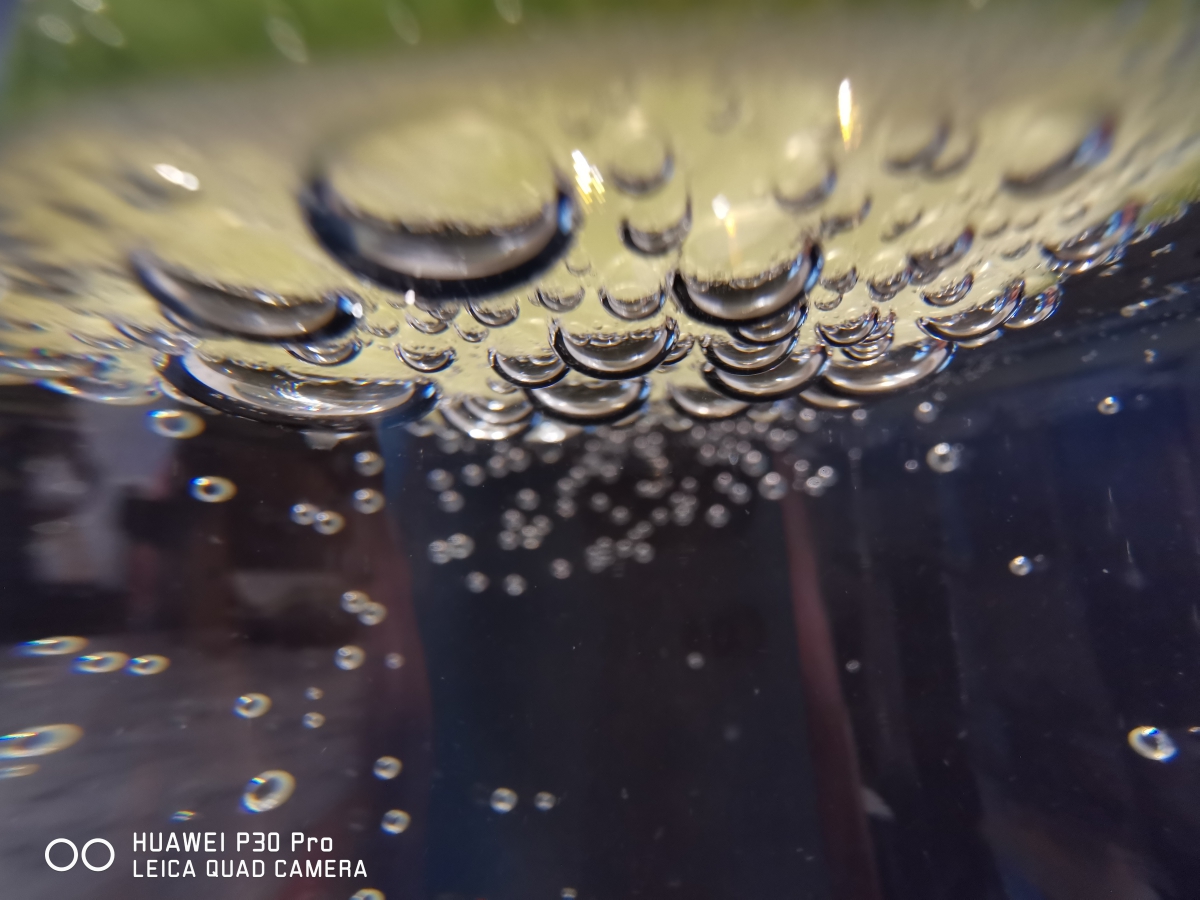 微距可以拍攝的世界真的很神奇,像是這個大家有猜出是什麼嗎?如果不講的話,可能會誤會是把手機放進水裡拍攝的,其實這張照片只是氣泡水放入一個檸檬片,然後從杯邊拍攝進去,這些氣泡是附著在檸檬片上的氣泡,很有趣吧。