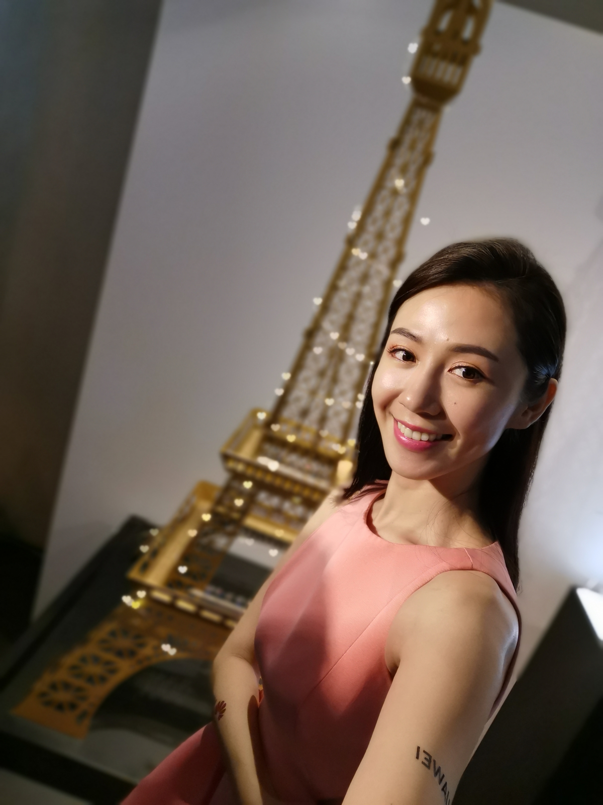 給大家看一下體驗會當天阿湯請 Model 自拍的畫面,看到後面的亮點都變愛心了嗎?這是韓劇中很常出現的畫面啊...
