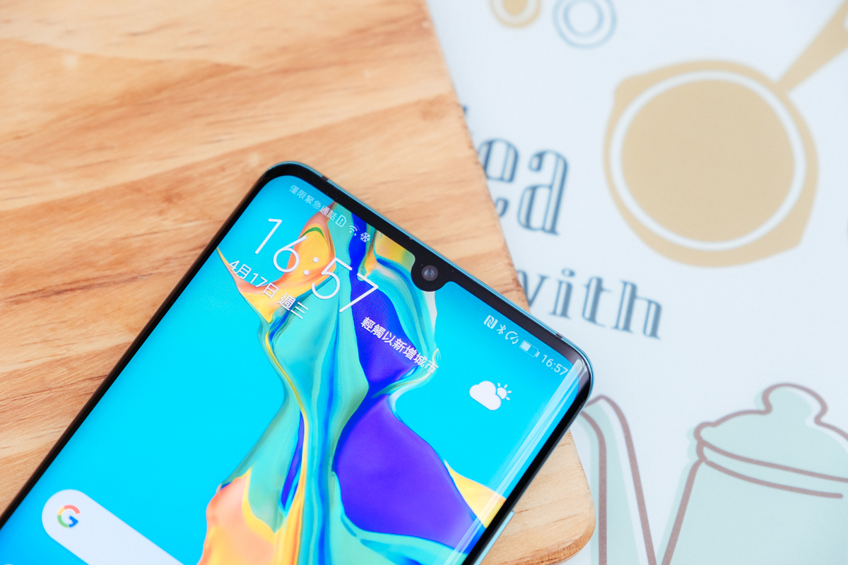 這次在 HUAWEI P30 Pro 上的全螢幕是採用珍珠屏設計,6.47 吋的曲面螢幕,螢幕佔比非常的高。