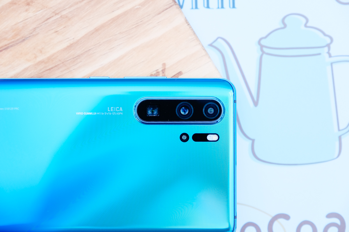 HUAWEI P30 Pro 搭載 40MP 27mm f/1.6 OIS 主鏡頭(中)、20MP 16mm f/2.2 超級廣角鏡(右)、8MP 125mm f/3.4 OIS 五倍光學潛望式鏡頭(左)、TOF 鏡頭(位於主鏡頭下方那個小小的鏡頭)。