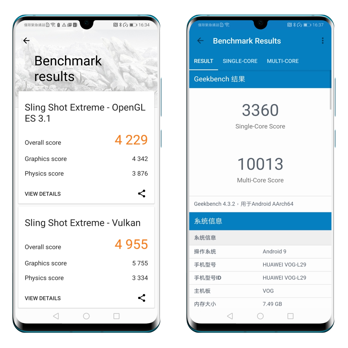 3DMark 在 OpenGL ES 3.1 獲得 4,229,Vulkan 獲得 4,955,而 Geekbench 單核分數為 3,360,綜合分數為 10,013。