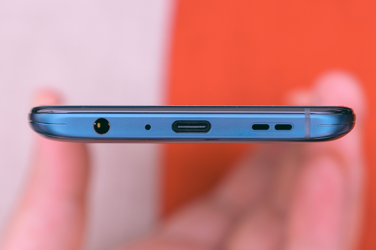 底部為 3.5mm 耳麥孔、降噪麥克風、揚聲器以及 USB Type-C 連接埠(支援 VOOC 3.0 閃充技術)。