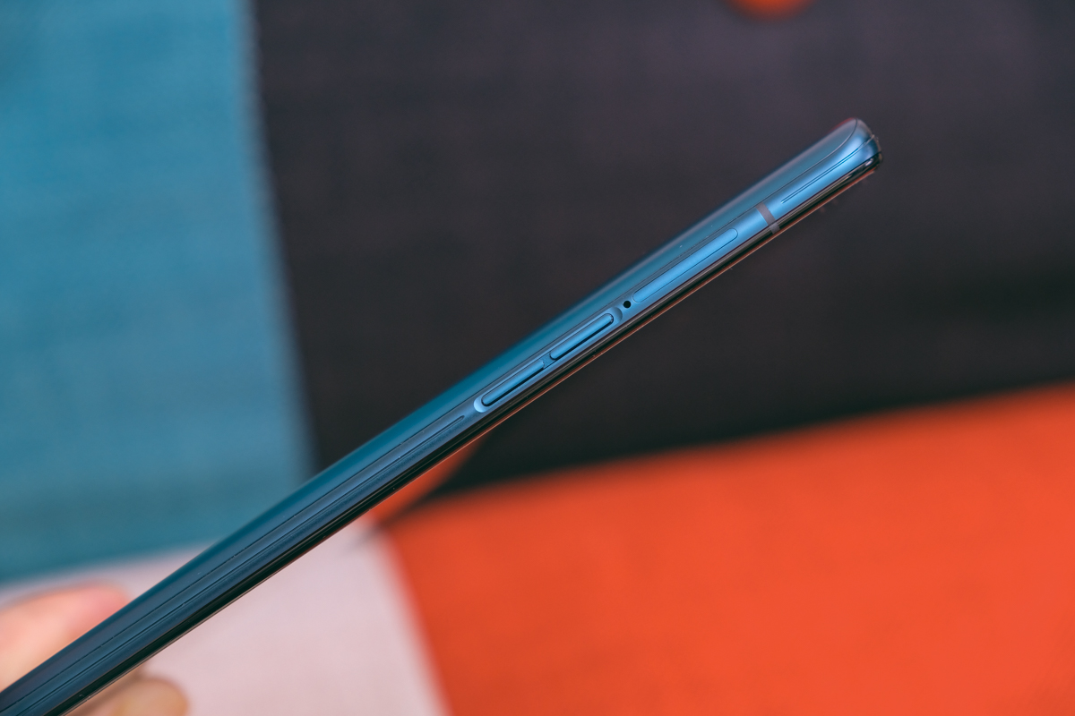 阿湯所拍攝的這一款 OPPO Reno 是霧海綠色,這顏色我覺得很可以,超美,並在局部採用 AG 霧面蝕砂工藝,同時結合霧面與亮面玻璃,讓背面設計看起來更加有層次感。