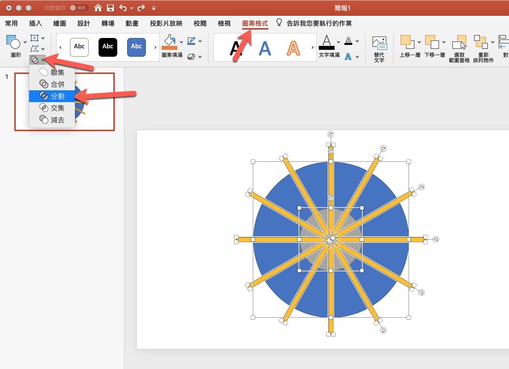 解答湯粉問題第 N 彈,有人拿了一個簡報檔來問阿湯,要怎麼製作分割圖片的扇形圓環圖,有沒有推薦的軟體,因為他看簡報裡這樣做分析報告很漂亮,超有質感,其實 PowerPoint 只要學會「分割」這一招,就能輕鬆的製作出非常多元的圖片類型,不論是扇形分割圓環,或者切割方塊、特殊形狀,甚至是蘋果的 Logo,其實用 PPT 就能快速搞定,往下我們來看看怎麼做。