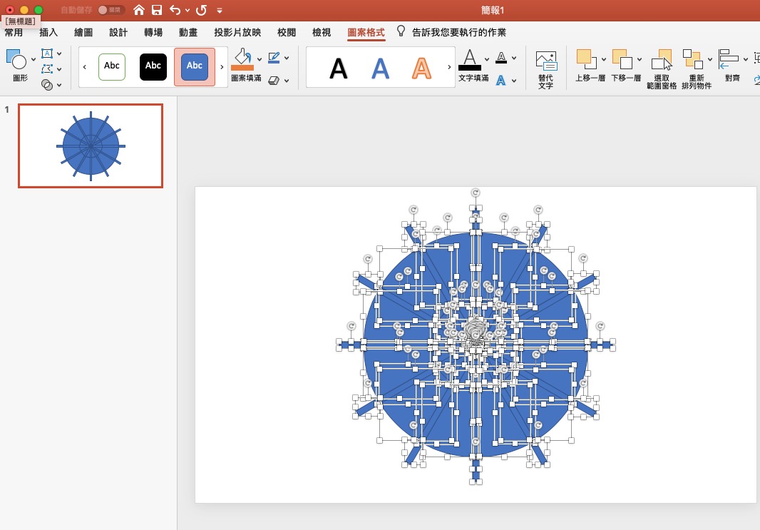 接下來請重複上述動作,分別旋轉角度 30、60、90、120 及 150 度,就會做成了下圖。