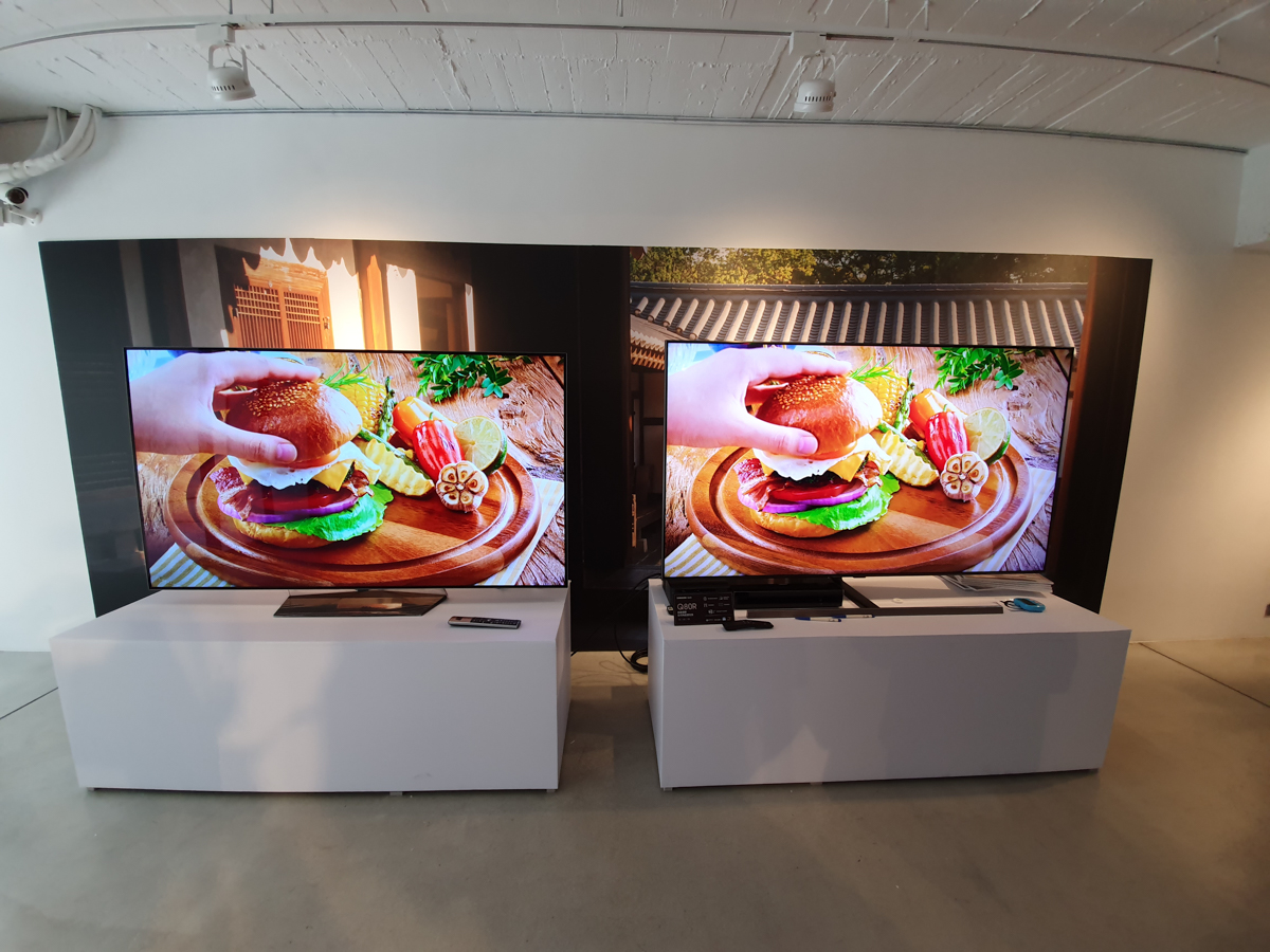 大多數單看一台電視會看不出差異,但當二台電視放在一起,高下立分,右邊為 Samsung QLED 量子電視,左邊則是某牌的電視,左右一看就會發現,右邊的亮度及色彩表現都是更佳的。