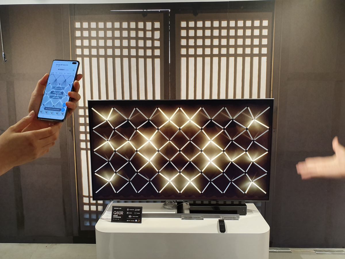 在去年就推出的變色龍模式,可以讓電視模擬家裡的牆面,讓畫面顯示出更符合家中的牆面樣式配色,讓電視在家中更加融入,而今年 2019 的變色龍模式再升級,透過 SmartThings APP 可以更加簡便的更換內容,還有更多模式可以選用切換。