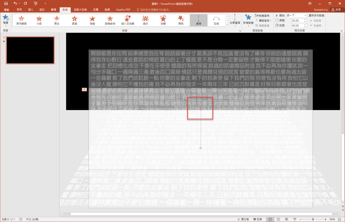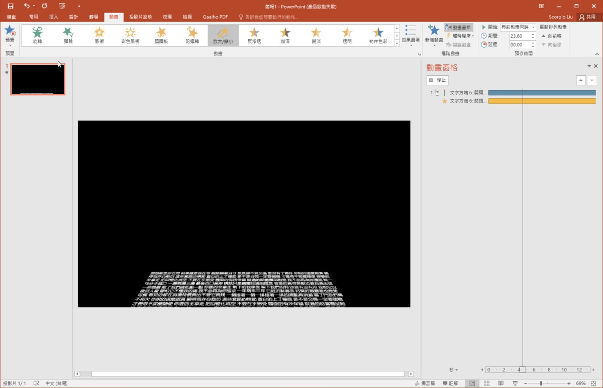 今天要來分享一個很多人以為是要做影片動畫才能達成的東西,很多電影片的片尾常會出現底部往上跑字,而且字體會由大縮小,到中上方時還會漸層消失,其實這樣的動畫效果只要透過 PowerPoint 簡報就可以搞定,步驟不算多也不算少,只要運用一些動畫效果再加上圖形遮罩就可以搞定,有興趣的往下看吧。