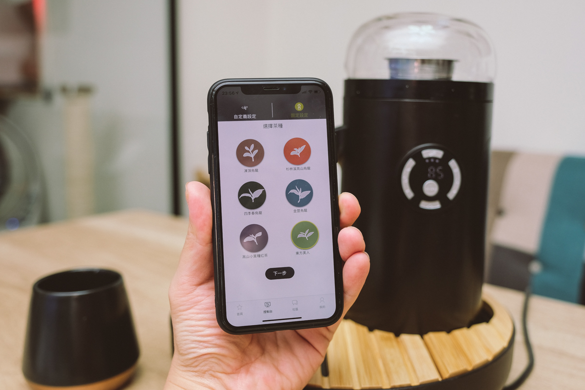 自動泡茶的部份超方便,目前已經有內建六種常見的茶種設定,選擇後按下一步就會開始泡茶,這真的很酷!