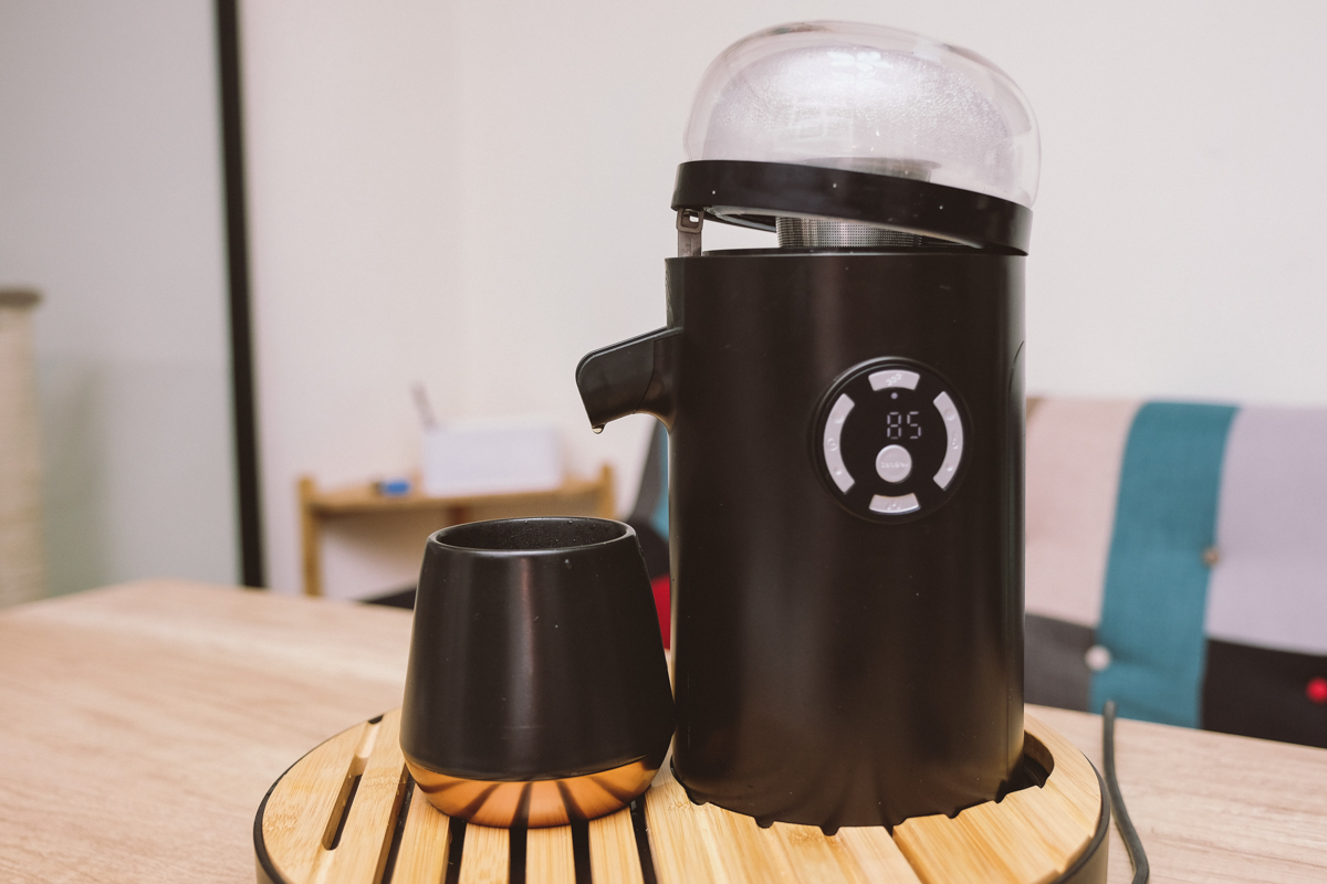 這篇文章不算是正式開箱,阿湯先就目前樣機的使用分享一點心得,首先外型設計的蠻不錯的,在「泡茶」的流程上也蠻順手的,我自己幾乎都是用 APP 泡茶,放茶葉、按一下我就可以去做其他事,因為我固定會把公道杯放在感應區,這樣一泡完就會出茶,也不用擔心茶會泡太久變苦或澀,像我每天早上起床第一件事就是餵湯包喝奶,陪他玩一下後再哄睡他讓他回籠覺一下,其實根本沒時間吃早餐,更不用說泡杯熱茶來喝,最近變成是餵湯包喝奶的期間,我就透過手機按一下泡茶,搞定這件事,方便很多。