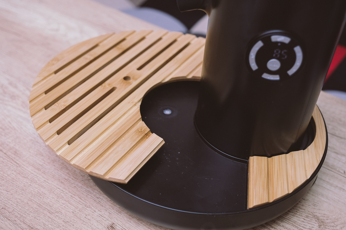 中間是啟動鍵,面板會顯示溫度以及設定的時間,隨著倒數,中間的 LED 燈號也會往內縮減,讓你知道還有多久泡好。