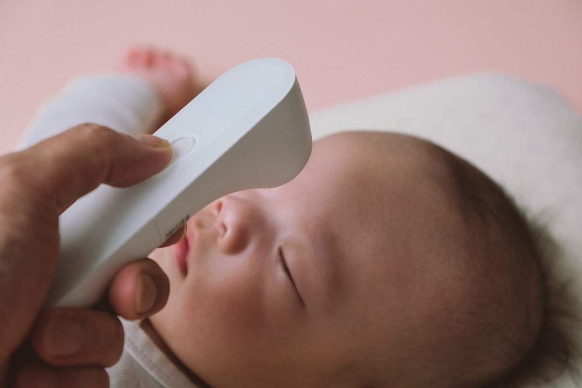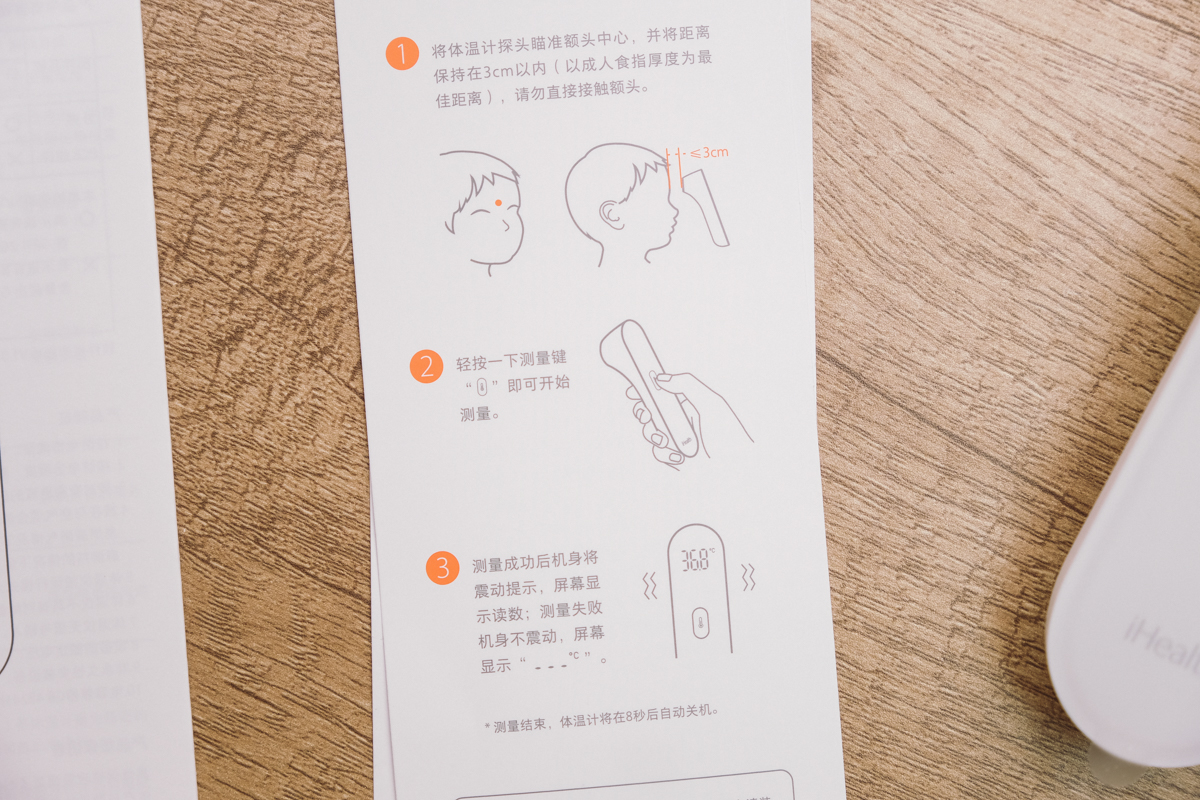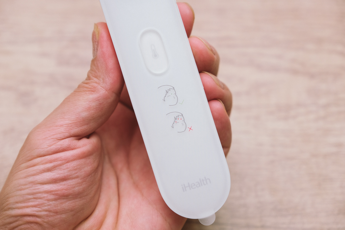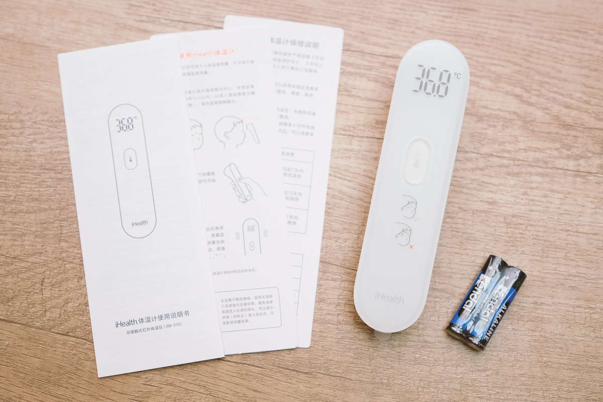 其實有了湯包之後,認真來說除了必要性的產品之外,我們幾乎沒額隨便添購其他相關嬰幼商品,而這次我想分享的是有關於「量體溫」這件事,時有所聞的大概聽過嫩嬰在六個月內很少會有發燒感冒等病症(如果有普遍是被感染),等到進到托嬰中心或是接觸更多人群時,就較有機會發生,所以阿湯也事前先準備好一款不用接觸身體的米家 iHealth 紅外線體溫計,只要在眉心前 3 公分按一下就能獲得精準的體溫值(算是啦),這麼一來就不會吵醒嫩嬰睡覺,隨時可以安心的量體溫。