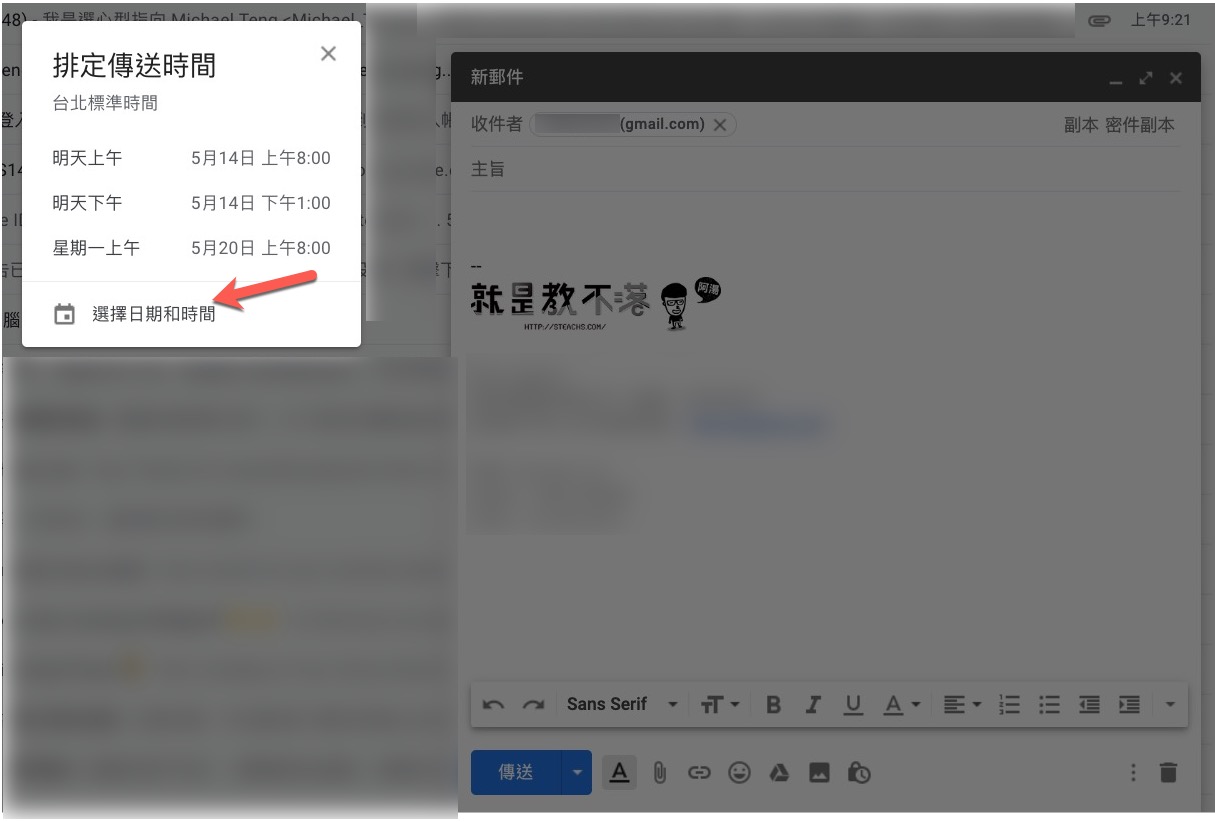 預設會有幾個時段讓你選擇,當然,阿湯認為應該都不會符合你想寄出的時間,可以點擊選擇日期和時間自行來設定。